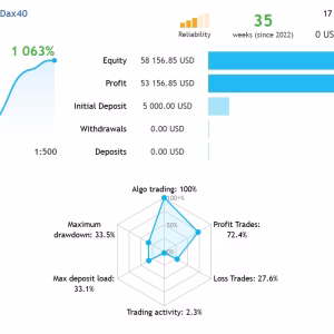 This Expert Advisor operates on the MT4 platform and is optimized for DAX40 Spot/Cash CFD, where spreads are typically tighter than DAX futures, helping improve overall execution quality.